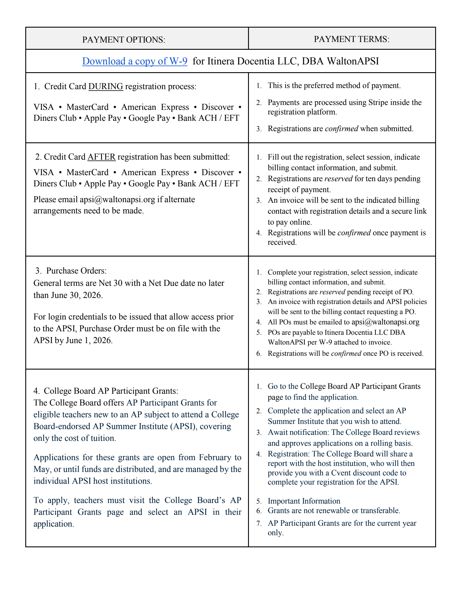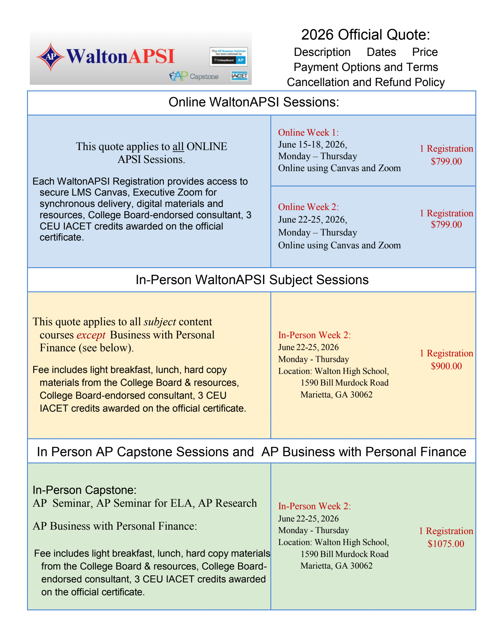 Download a copy: 2026 Quote – Payment Options – College Board Grants – Cancellation and